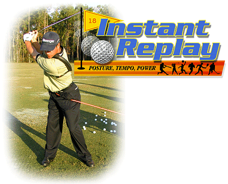 "The Instant Replay promotes movement awareness necessary for an efficient, powerful golf swing by subconsciously educating the body regarding timing, loading, weight shift, and rotation. These four components, intimately associated, are the precursors to skilled athletic movement. This device serves as a system for reproducing repetitive and consistent movement patterns. Athletic performance in sports such as tennis, baseball, football, hockey, wrestling, and basketball can also benefit from this unique training system."